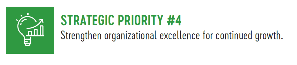 STRATEGIC PRIORITY #4: Strengthen organizational excellence for continued growth.
