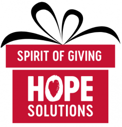 We are preparing our annual Spirit of Giving program. Through the generosity of our Hope Solutions’ community we will be able to help make this holiday season especially memorable for the families in our program. Supporters will be provided family profiles and wish lists to ensure each child and adult receives something special. Additionally, we ask supporters to provide grocery gift cards to allow each family to celebrate the holidays in their own tradition.
